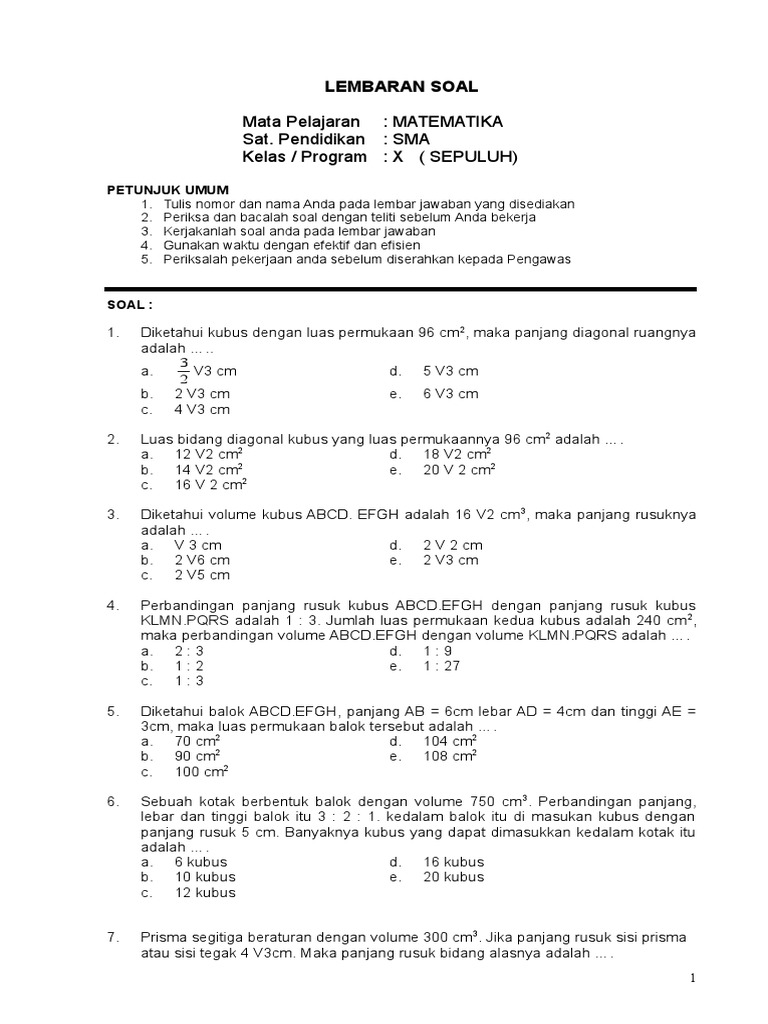 Soal Matematika Volume