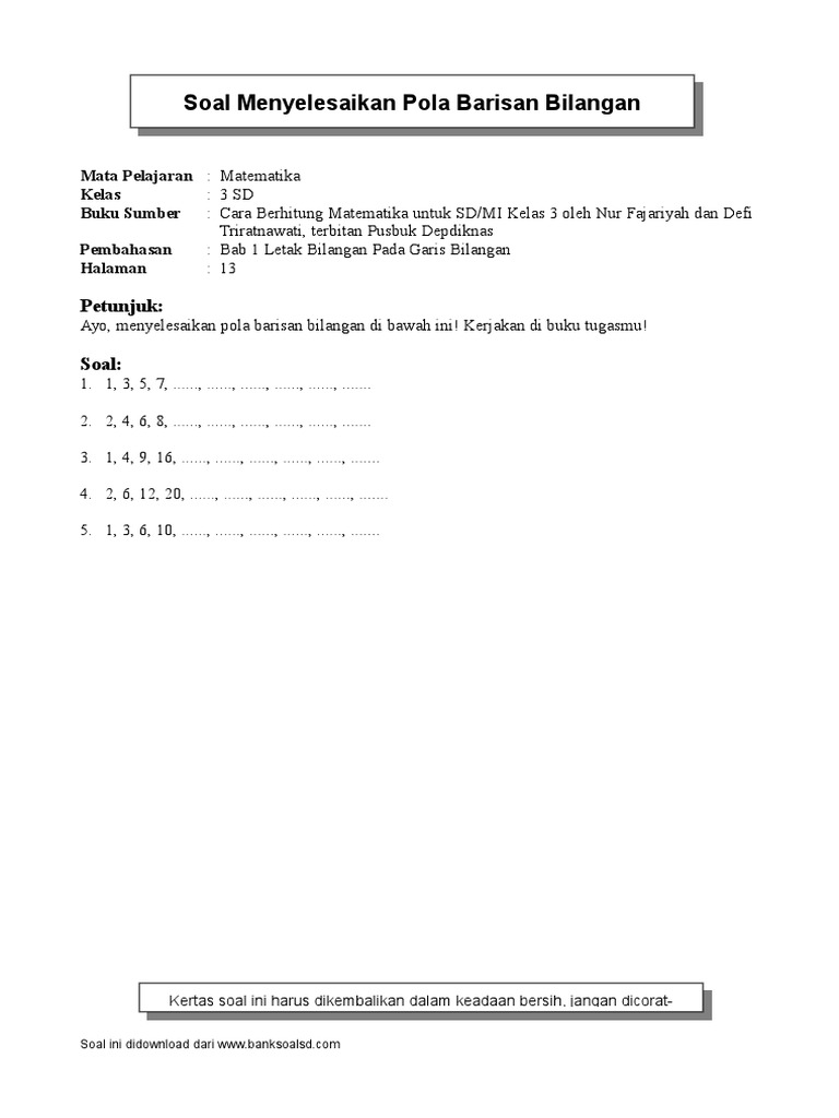03 Sd Mtk Fajariah Soal 01 11 Menyelesaikan Pola Barisan Bilangan