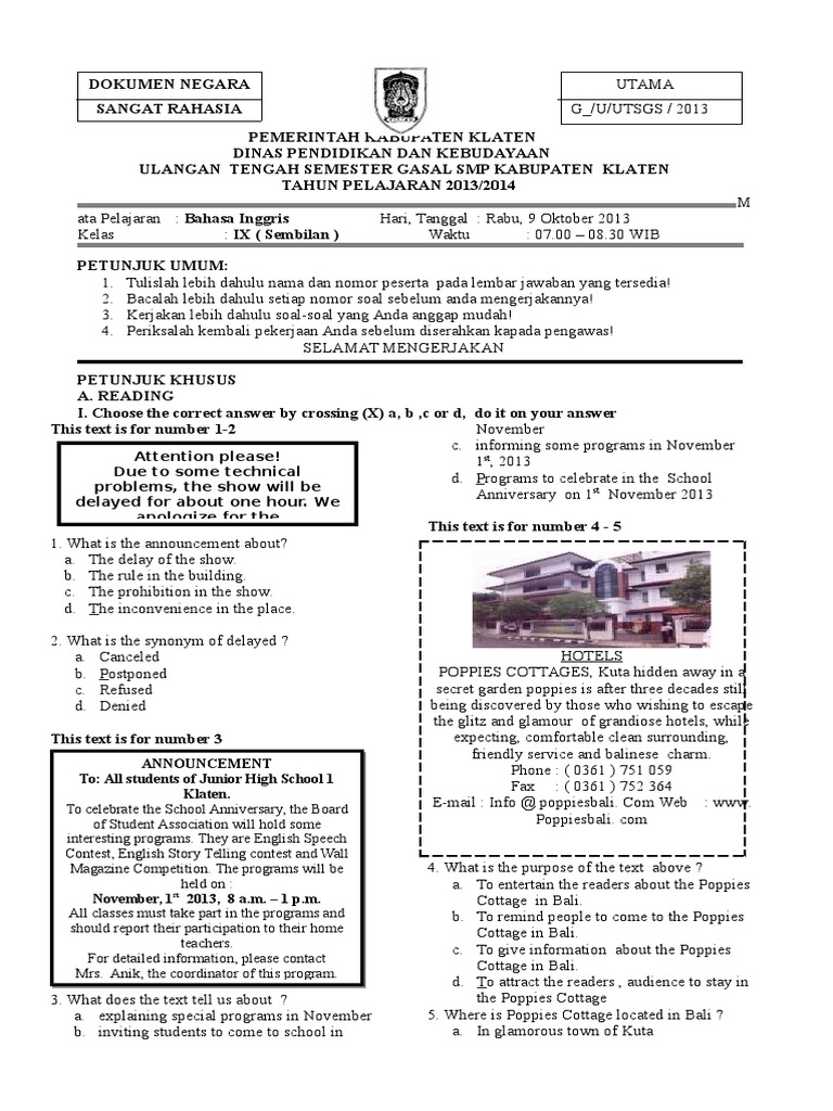 Soal Ukk Bahasa Inggris Smp Kelas 7 Kurikulum 2006 Didno76 Com