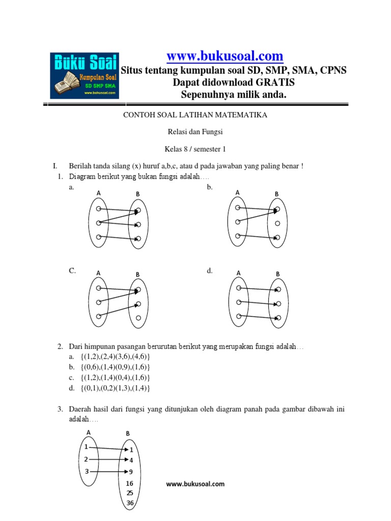 Soal Latihan Relasi Dan Fungsi Smp Kelas 8 Made Nuryadi