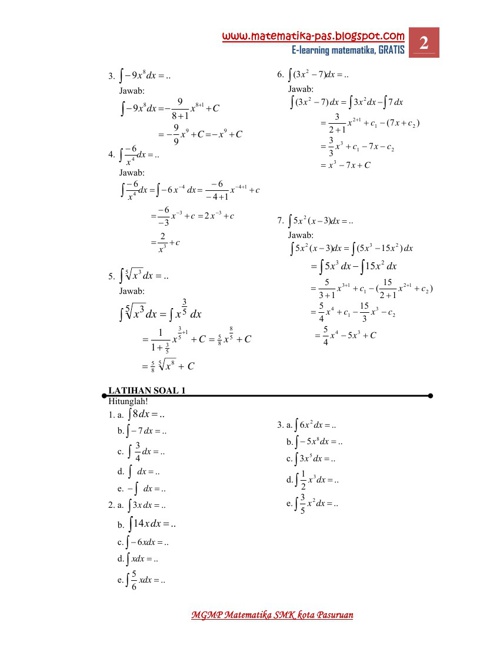 Integral Soal Jawab Soal Latihan Dan Pembahasan Integral Di Susun