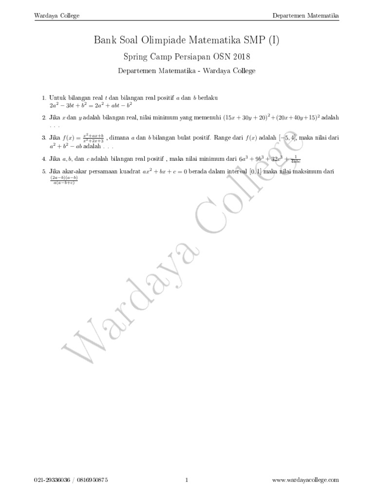 Bank Soal Olimpiade Matematika Smp Spring Camp Persiapan Osn 2018
