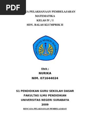 Rpp Matematika Sd Mi Kelas 4 6 Soalujian Net