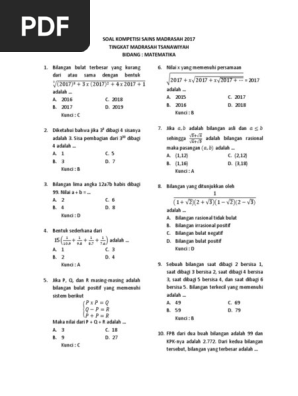 Latihan Soal Dan Kunci Jawaban Ksm Matematika Mi 2019 Pdf