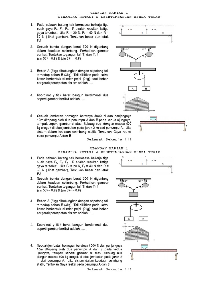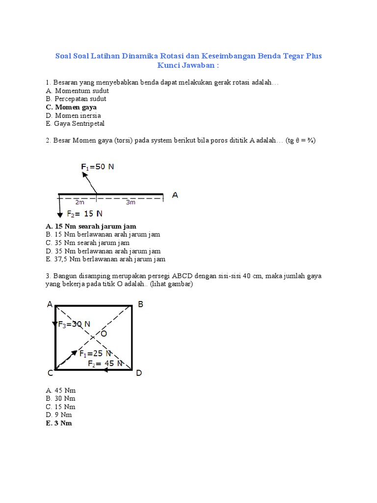 Soal Soal Latihan Dinamika Rotasi Dan Keseimbangan Benda Tegar Plus