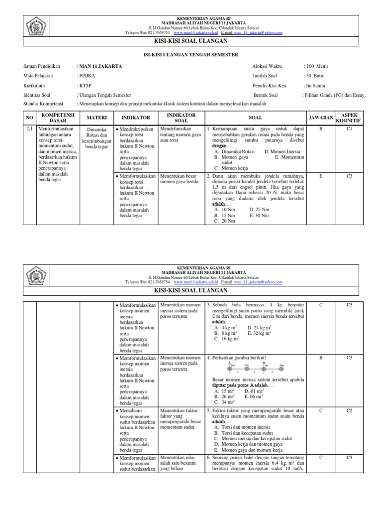 Jawaban Soal Uk Bab 1 Fisika Kelas Xi Keseimbangan Dan Gerak Rotasi