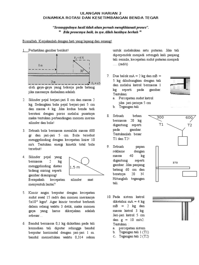 Soal Ulangan Dinamika Rotasi Dan Kesetimbangan Benda Tegar