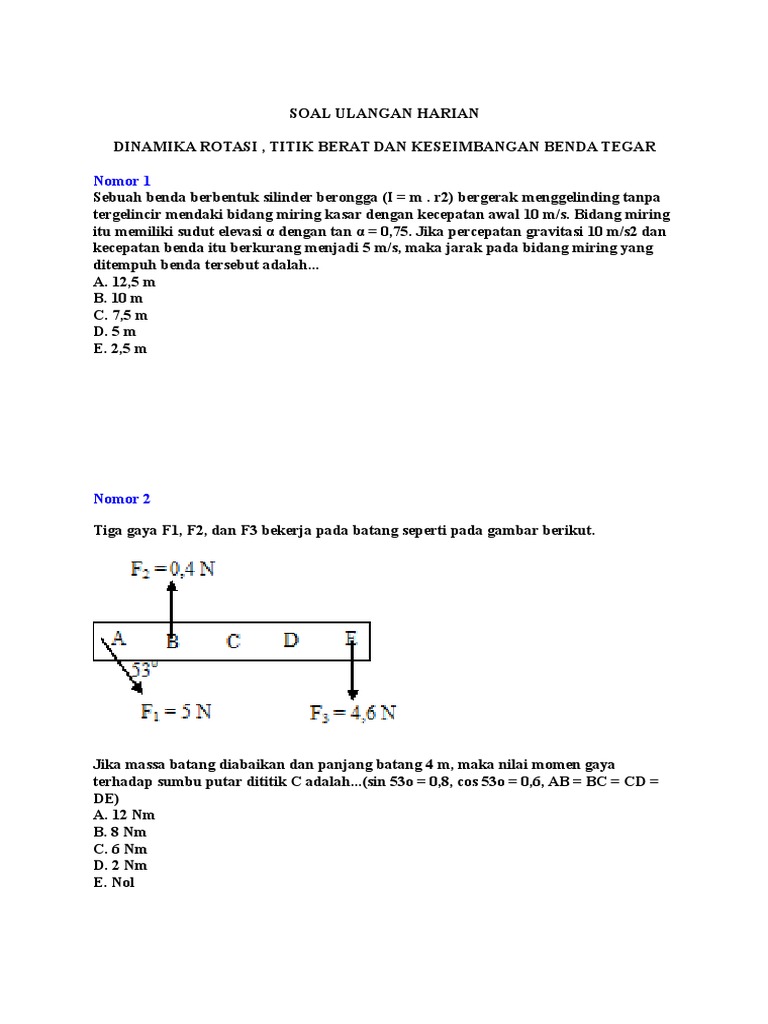Soal Dinamika Rotasi Dan Kesetimbangan Benda Tegar Un