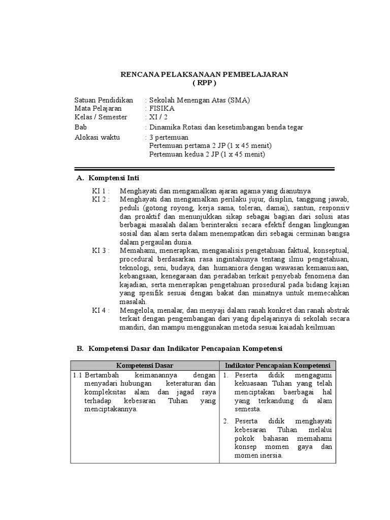 Rpp Fisika Kelas Xi Dinamika Rotasi