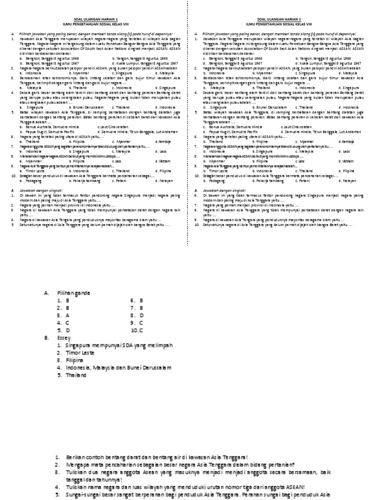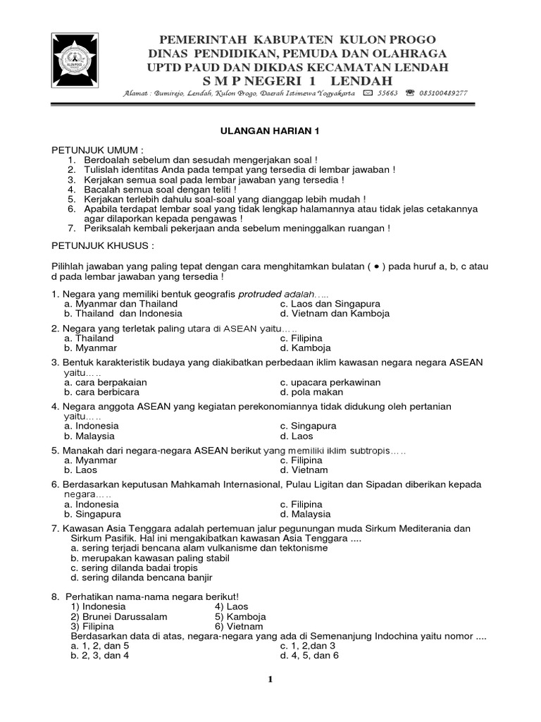 Soal Ulangan Harian Kelas 8 Ips Negara Asean