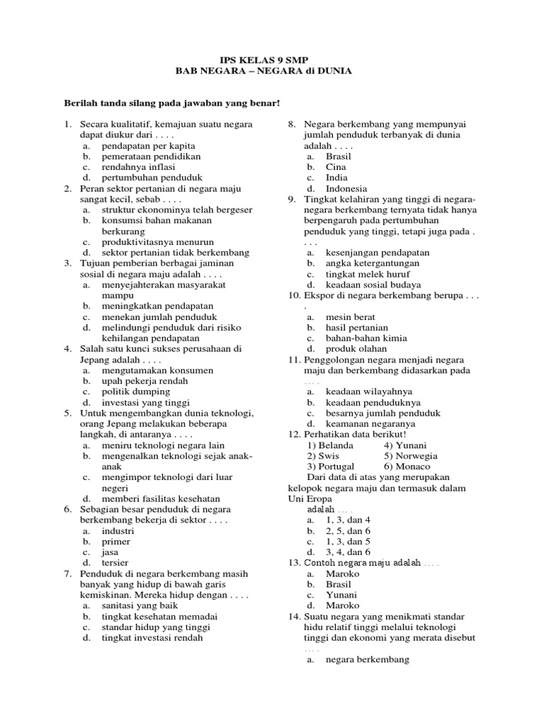 Soal Uh Ips 9 Smt 1 Negara Maju Dan Berkembang