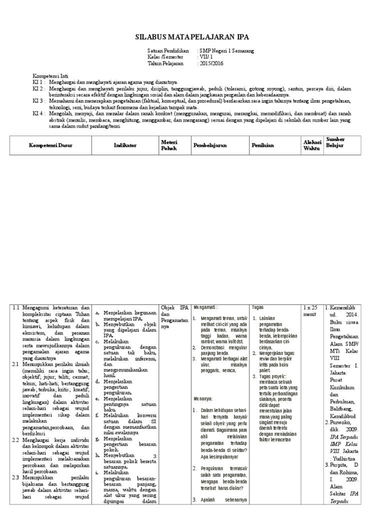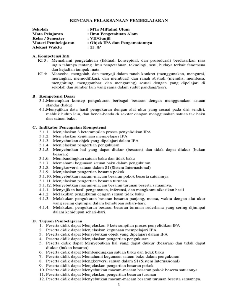 Rpp Ipa Kelas 7 Bab 1 Objek Ilmu Pengetahuan Alam Dan Pengamatannya