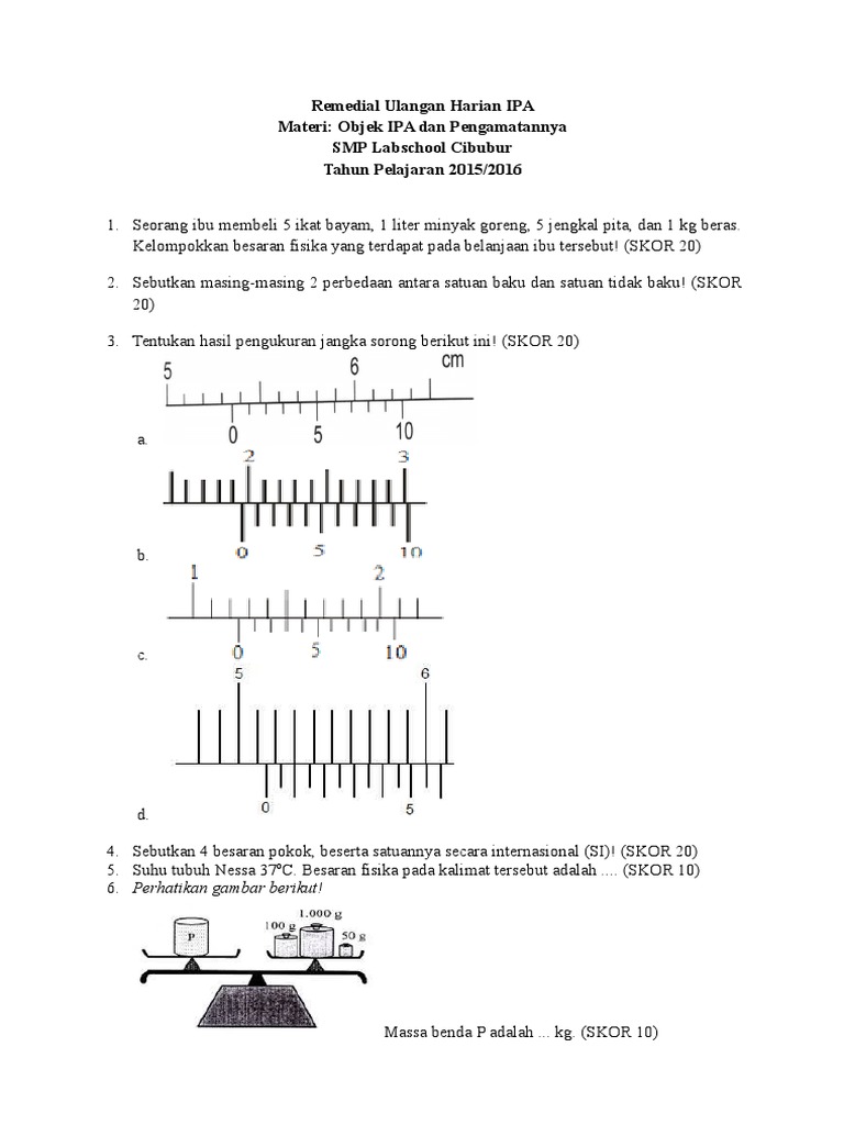 Soal Ipa Kelas 7 Smp Bab Besaran Dan Satuan Dan Kunci Jawaban