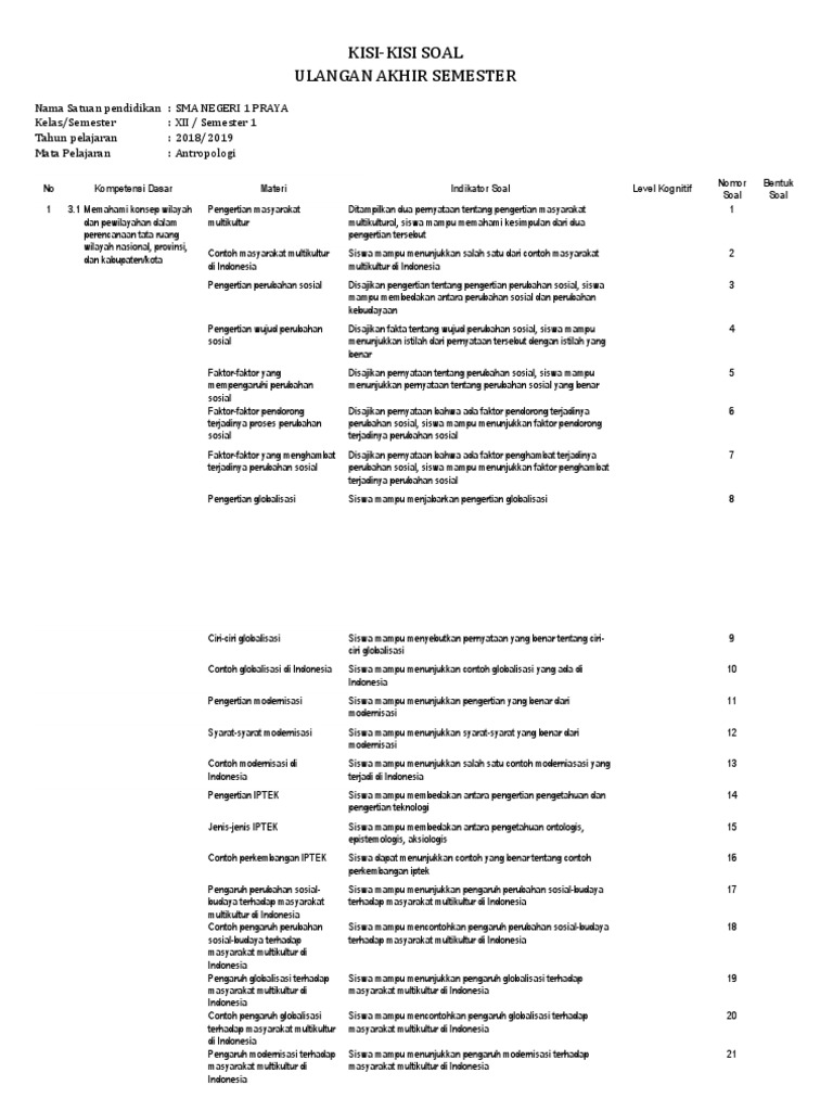 Kisi Kisi Soal Ulangan Akhir Semester